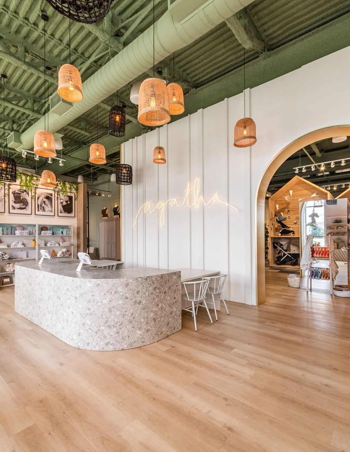 Lorsque les propriétaires du Agatha nous ont approchés, ils rêvaient d’un espace qui redéfinirait l’expérience d’achat pour les jeunes familles. Notre mandat : transformer un vaste espace et sans âme en un aménagement intérieur de magasin où chaque zone raconte une histoire.