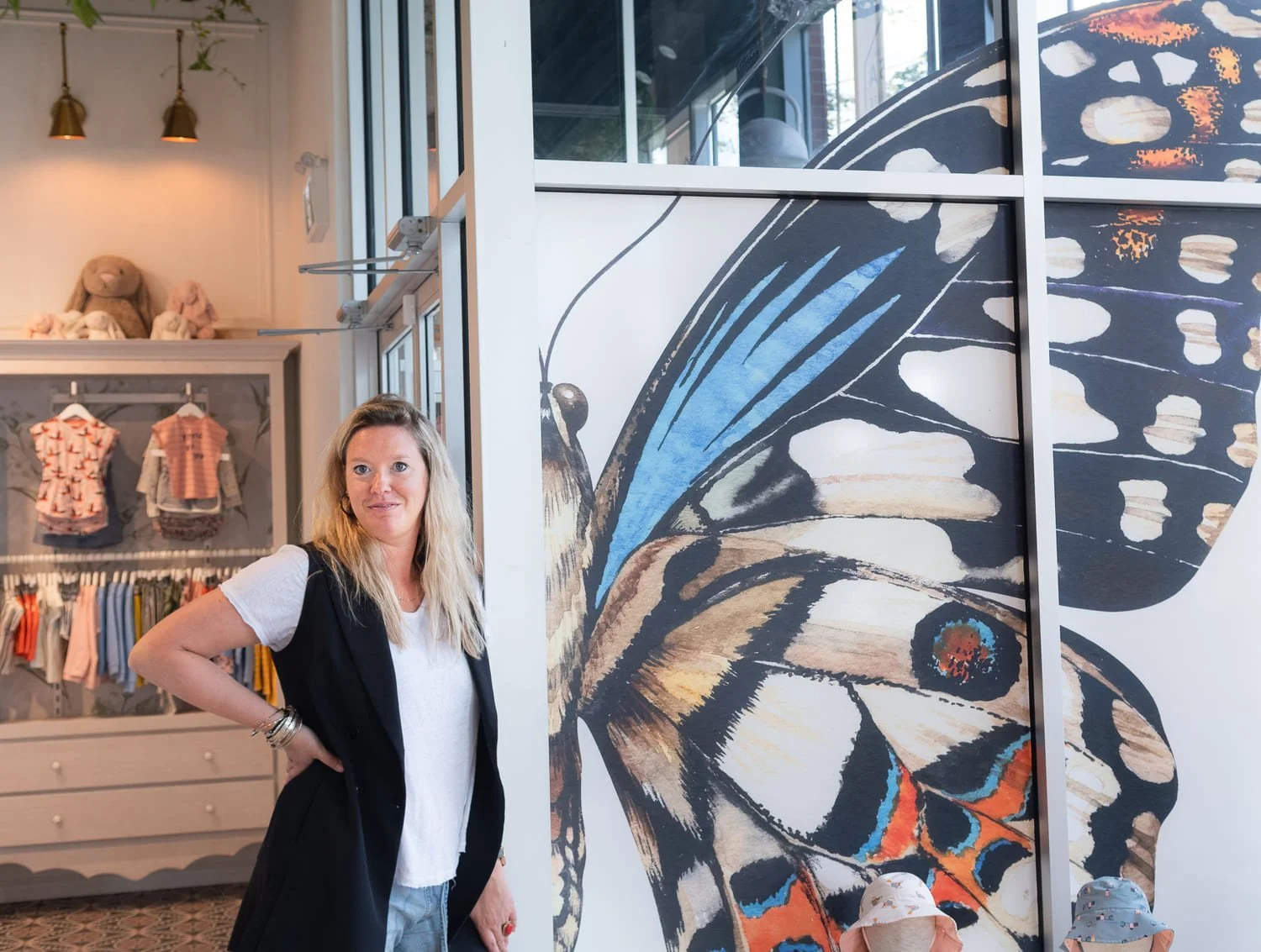 Les éléments visuels graphiques: papillon géant et murale aquarelle.