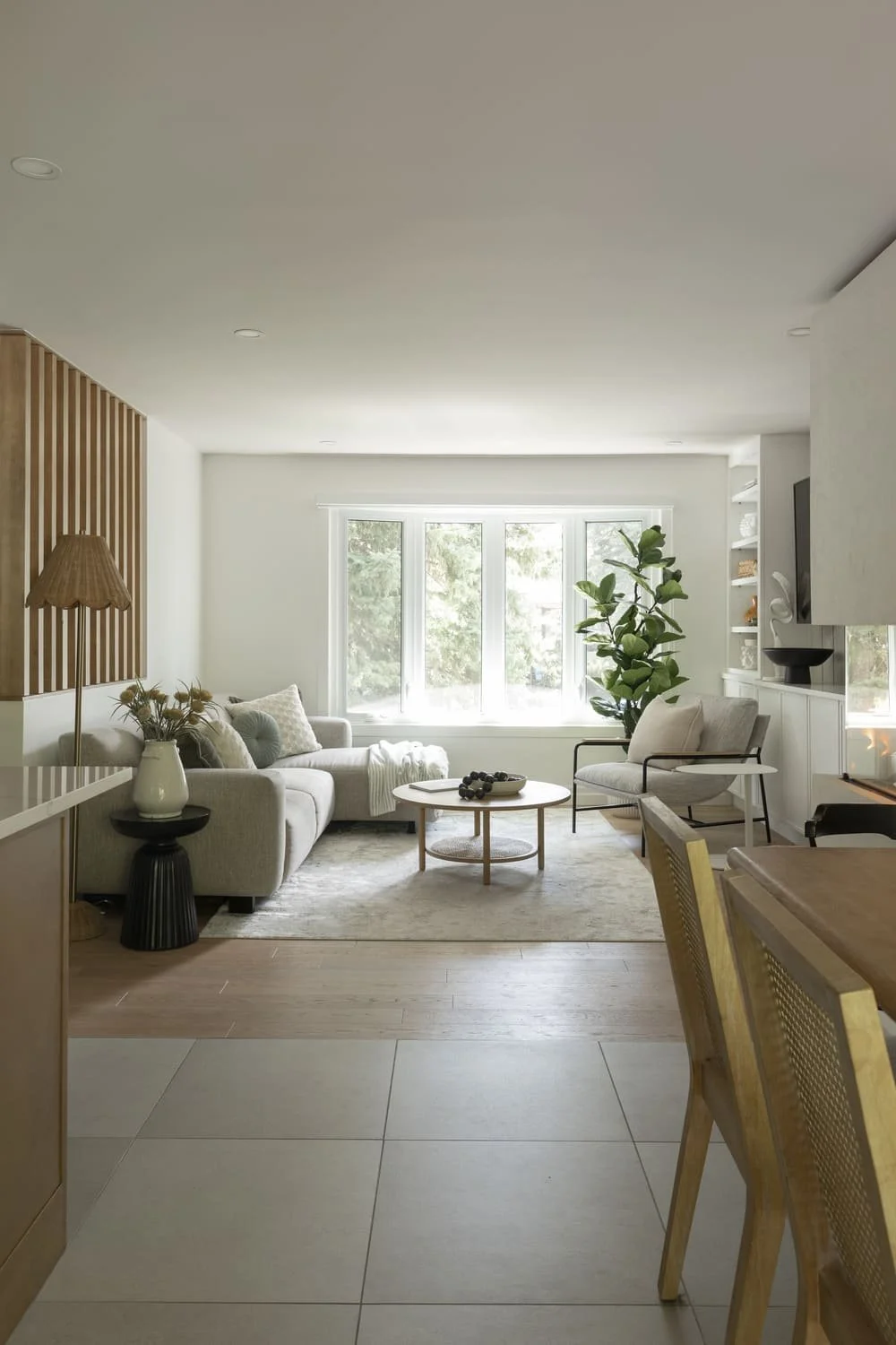 Située dans le West Island, le rez-de-chaussée de cette maison de type split-level typique a été entièrement repensée pour répondre aux besoins d’une jeune famille. L’objectif : insufflé un style intemporel et classique contemporain, où chaque détail vise à créer une aire de vie lumineuse, fluide et parfaitement adaptée à leur quotidien.